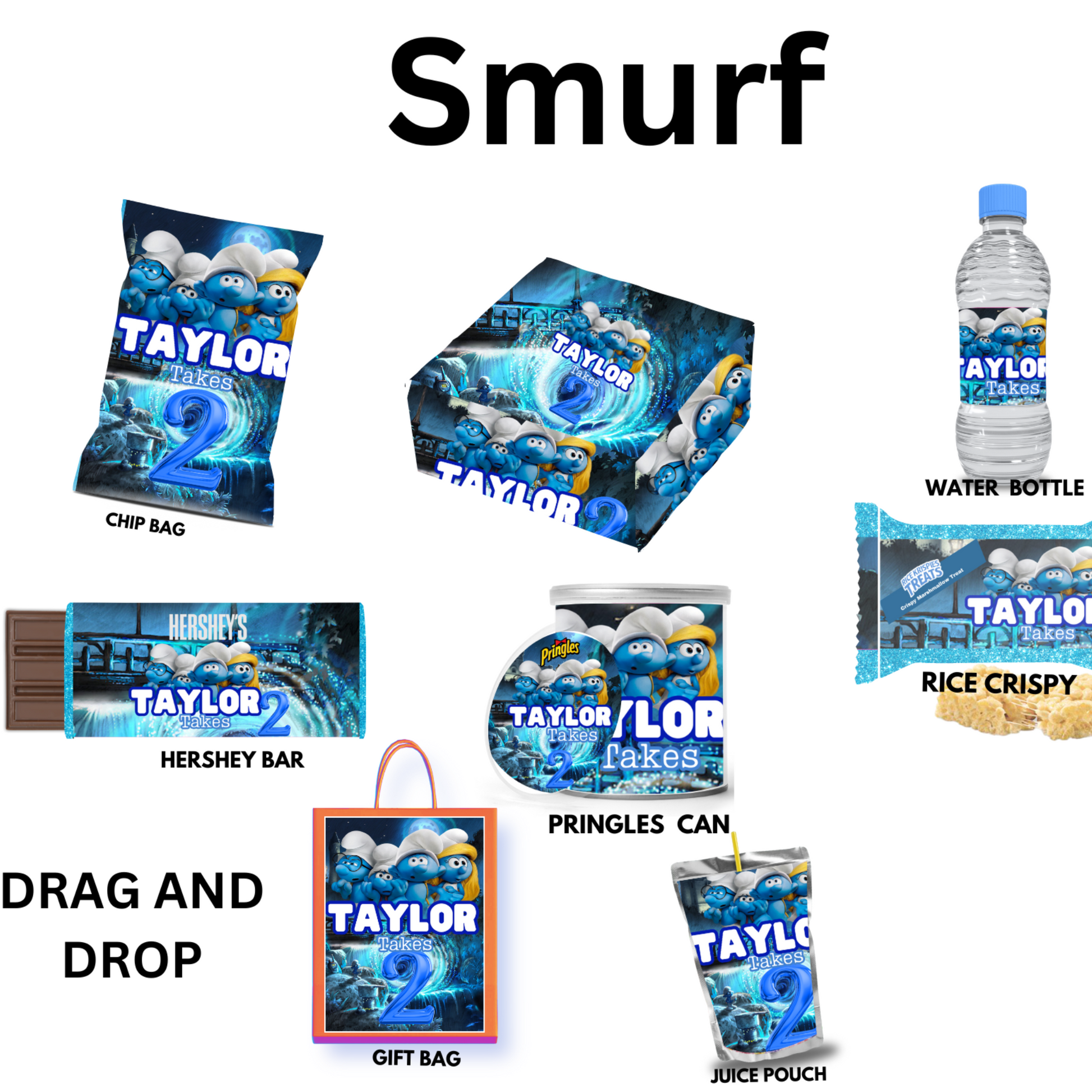 Smurf Bundle Party Favor Canva Design Templates plus mockup (10 editable templates and designs)